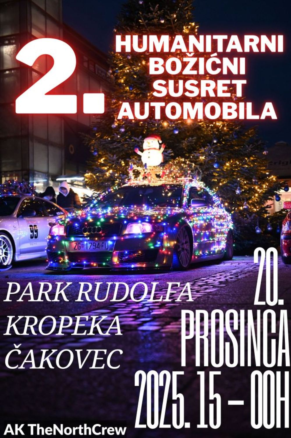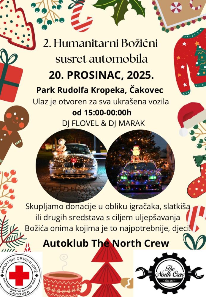 Nakon uspjeha prošlogodišnjeg prvog božićnog humanitarnog autosusreta, The North Crew i Turistička zajednica grada Čakovca ponovno pozivaju sve građane i zaljubljenike u automobile na veliki, drugi po redu, humanitarni božićni auto susret. Događaj će se održati u subotu, 20. prosinca, u Parku Rudolfa Kropeka, koji će se tom prilikom pretvoriti u pravu malu božićnu bajku ispunjenu blještavim, prigodno ukrašenim automobilima.