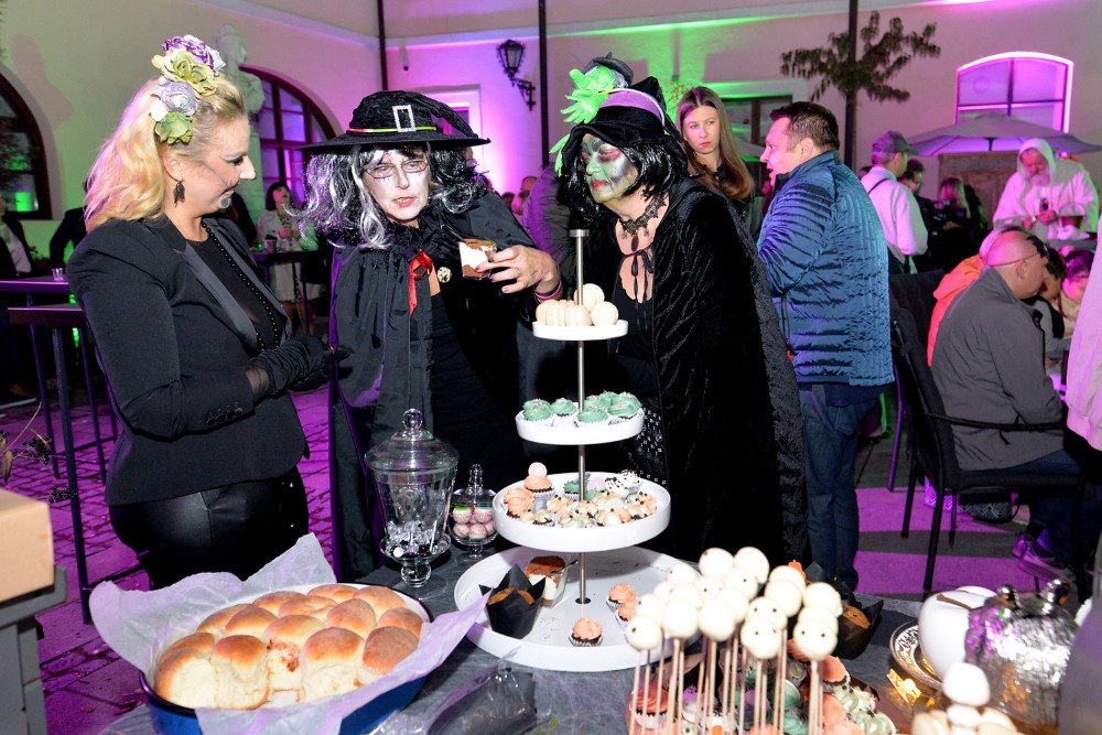 Cijeli atraktivni program upotpunjen je prigodnim jelima i pićima poput jezive trpeze Halloween kolača, slastica s nezaobilaznim štruklima od buče, kuhanim bazginim vinom iz kotla, kuhanim jezivim punčom te pečenim jabukama. U prepunom atriju posjetitelje su zabavljali Paganini trio, kao i DJ s prigodnom glazbom.
