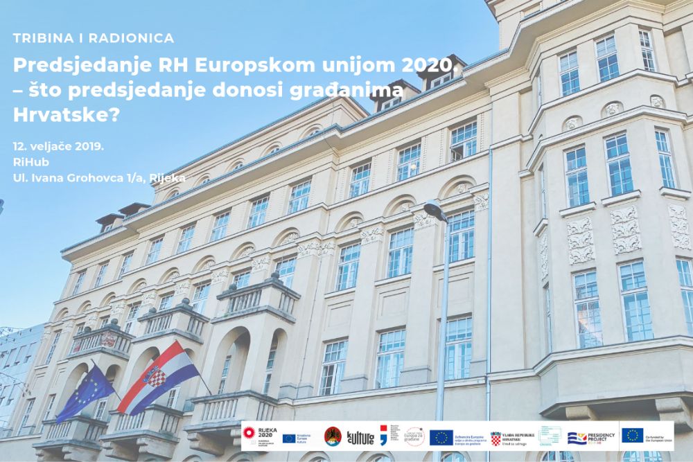 Desk Kreativne Europe – Ured KULTURA s partnerima Uredom za udruge Vlade RH, platformom CROSOL i Rijekom 2020 EPK poziva sve zainteresirane građane na sudjelovanje u tribini i radionici „Predsjedanje RH Europskom unijom 2020. – što predsjedanje donosi građanima Hrvatske?“ Tribina i radionica održat će se u utorak 12. veljače 2019. godine, s početkom u 11:00 sati u prostoru novog kulturnog centra RiHub u Rijeci.