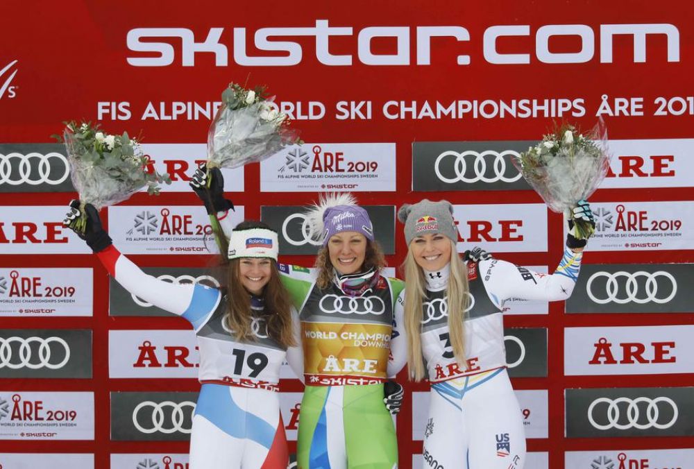 Amerikanka Lindsay Vonn je osvajanjem bronce postavila još jedan rekord, postavši jedina skijašica koja je osvajala odličja na šest svjetskih prvenstava. I prve dvije medalje osvojila je u Areu prije 12 godina, srebra u spustu i superveleslalomu. Karijeru je zaključila sa dva zlata, tri srebra i tri bronce sa šest svjetskih prvenstava.