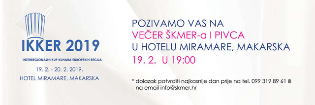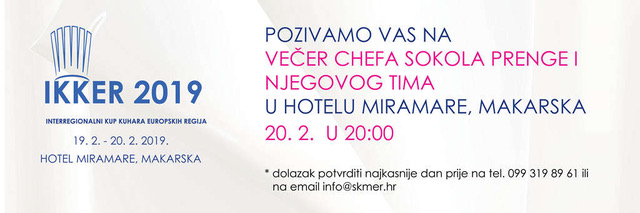 Šefovi kuhinja mediteranskih i europskih regija od 19. do 21. veljače u makarskom hotelu Miramare organiziraju Interregionalni kup kuhara europskih regija – IKKER 2019. Radi se o manifestaciji koja se po peti put održava uz podršku Grada Makarske, Turističke zajednice grada Makarske, hoteli Miramare i Biokovo te Grupacije Pivac, a objedinjuje natjecanja u kuhanju deset vrhunskih kuhara koji su lani pobijedili na natjecanjima u svojim državama, amatera u spremanju jetrica na venecijanski način, prezentacije i edukacije.