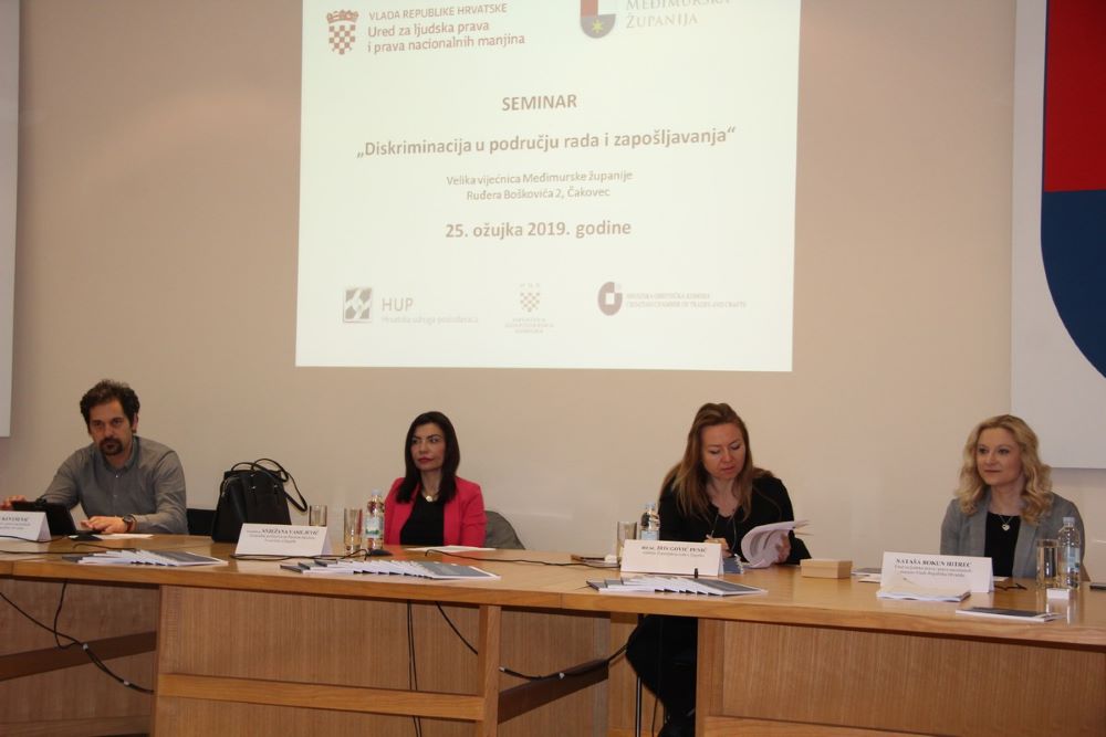 U okviru provedbe aktivnosti iz Akcijskog plana za provedbu Nacionalnog plana za borbu protiv diskriminacije 2017.-2019. godine te Programa provedbe Strategije borbe protiv siromaštva i socijalne isključenosti u Republici Hrvatskoj 2014. - 2020. godine, Ured za ljudska prava i prava nacionalnih manjina Vlade Republike Hrvatske u suradnji s Međimurskom županijom održao je u ponedjeljak, 25. ožujka 2019. godine seminar na temu „Diskriminacija u području rada i zapošljavanja“.