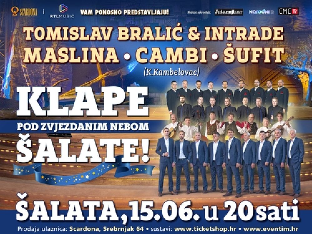 Glazbeni spektakl klapskih fenomena održati će se 15.lipnja u 20 sati na Šalati. Izvođači će biti Tomislav Bralić i klapa Intrade, klapa Cambi (K.Kambelovac), klapa Maslina i Šufit. Klape su krajem devedestih godina počele osvajati publiku zbog sugestivnih izvedbi vremešnih standarda dalmatinske a cappelle pjesme" baštinskog materijala", ali i neponovljivih interpretacija pop- rock materijala Zlatana Stipišića- Gibonnija, Harija Rončevića i drugih poznatih autora na festivalu u Omišu. Donijeli su svježinu i originalnost i ponovno pokazali svu raskoš klapske pjesme i približili je novim generacijama kojim je to bilo glazbeno otkriće. Nakon što se 15.000 ljudi okupilo revolucionarne 2006. godine, na nikad do tad viđenom klapskom spektaklu na Poljudu, klape su postale fenomen o kojem su puno pričalo i pisalo, počele su vladati radijskim eterom i nastupati u velikim dvoranama, stadionima. Veličanstveni koncerti održani na Poljudu, Ciboni, Areni Pula, Trsatskoj Gradini snimljeni su tako da i danas možemo uživati u sjajnim koncertima i svjedočiti koliko su oni značili publici i izvođačima. Klape su na glazbenoj sceni zauzele poziciju koju su svojim talentom zaslužili. Danas, dva desetljeća kasnije, za klape se i dalje traži karta više, a klape su osvojile publiku u cijelom svijetu nastupajući uspješno u Americi, Kanadi, Australiji i u Europi. Klape su postale naš uspješni izvozni brend,a najveći uspjeh su ostvarili u Sloveniji koja izuzetno voli klape gdje već godinama pune sve sportske dvorane i arene. Koncetni spektakl "Klape pod zvjezdanim nebom Šalate" održati će se na čarobnoj Šalati, omiljenom zagrebačkom otvorenom prostoru koji je upravo idealan za koncerte zbog svoje sjajne lokacije, amfiteatorskog oblika gledališta, sjajne glazbene povijesti. Pogled sa tribina na tornjeve katedrale koji se vide u daljini nad pozornicom jedinstveni je doživljaj, a atmosferu Šalate dodatno će pojačati baklje pozicionirane oko pozornice, scenografija koja prati sve klapske koncerte i vrhunska produkcija koja publici omogućuje potpuno uživanje u koncertu. Pogled sa tribina na tornjeve katedrale koji se vide u daljini nad pozornicom jedinstveni je doživljaj. Nastupiti će pioniri nove klapske scene i tvorci brojnih hitova poput: Zora bila, Da te mogu pismom zvati, Ne diraj moju ljubav, Ne more mi bit i brojnih drugih pjesama koje su osvojile publiku diljem Lijepe naše, a i šire. Dobitnici su brojnih nagrada i priznanja, čime su pridonijeli jačanju dalmatinske kulture. Tomislav Bralić i klapa Intrade zapjevati će neke od najvećih klapskih hitova poput "Zora bila", "Škrinja jubavi", "Ne damo te pismo naša" i "Zalutali pogled", a upravo im izlazi i novi singl "Bilo je i vrime", naslovna pjesma njihovog novog albuma. Klapa Šufit sa novim albumom "Oprosti dušo” dobitnici su "Porina" za najbolji pop-folklorni album. Njihov mega klapski hit "Ne diraj moju ljubav" obilježio im je karijeru i trenutno ima 30 milijuna pogleda na Youtubeu, a pjesma je jednako obožavana kao i u vrijeme kad je objavljena. "Oprosti dušo" treći je album klape Šufit u izdanju Scardona, a na njemu su hitovi poput "Ne more srce kontra sebe", "Proplakat će srce" i "Oprosti dušo". Klapa Cambi (K. Kambelovac) naša je najnagrađivanija klapa koja je pjevajući tradicionalne a cappella i zabavne pjesme, uspjela ostvariti sklad dalmatinske glazbene baštine i suvremenih glazbenih kretanja. Pjesmama "Ne more mi bit" ,"Od zipke do Križa", "Kriva karta" i "Popucale rebatine" oduševili su publiku i kritiku. Ostvarili su velike uspjehe iz koji se posebno izdvaja koncert na stadionu Poljud 2011. godine. Klapa Maslina predvođena tenorom i solistom klape Brankom Bubicom, izuzetan uspjeh ostvarili je pjesmom "Da te mogu pismom zvati" koja postaje najizvođenija klapska pjesma, osvajaju publiku svojim nastupom, a imaju "naramak" kultnih pjesama kao što su "Maslina je neobrana" i "Ostala si ista". Organizatori koncerta su Scardona i RTL music. |