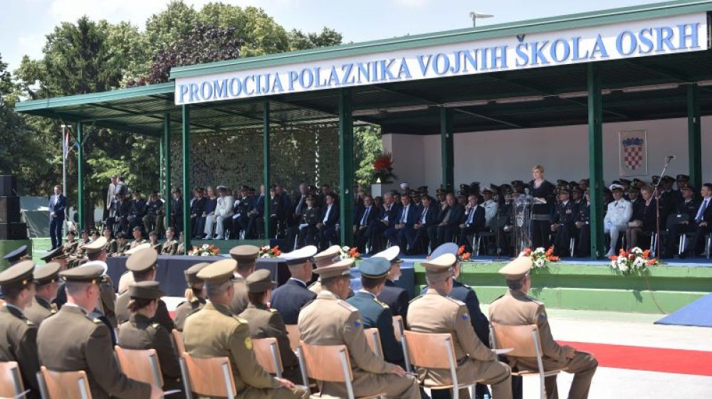 Predsjednica Republike Hrvatske i vrhovna zapovjednica Oružanih snaga Republike Hrvatske Kolinda Grabar-Kitarović nazočila je svečanoj promociji polaznika vojnih škola u Vukovaru te tom prigodom čestitala polaznicama i polaznicima visoke dočasničke, temeljne časničke, zapovjedno-stožerne i ratne škole na uspješno završenom školovanju.