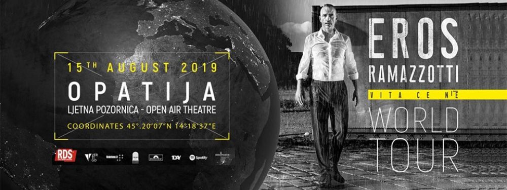Eros Ramazzotti, jedna od najvećih svjetskih glazbenih zvijezda dolazi u Opatiju 15. kolovoza 2019. godine. Ramazzotti će tijekom svoje turneje 2019. godine prezentirati novi album ‘Vita ce n’è’ koji već obara rekorde slušanosti, ali publika neće ostati uskraćena ni za njegove dosadašnje hitove.