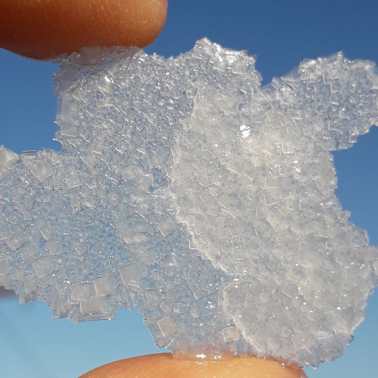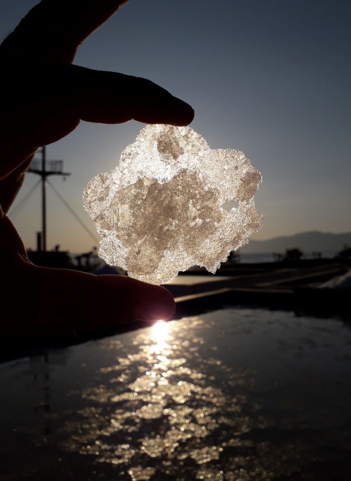- Imam dvanaest malih bazena po 12 metara kvadratnih, obiteljski je to posao s dvoje zaposlenih. Taloženje se odvija u neprestanom kretanju ugušćene mase što rezultira kristalima željene kvalitete. U klasičnoj proizvodnji, oborine u proizvodnoj godini nanose 35 posto štete i skraćuju proizvodnu godinu klasične proizvodnje na tri mjeseca dok ovdje utjecaj vjetra štiti proizvodnju od oborina produžujući proizvodnu godinu na svih 365 dana.