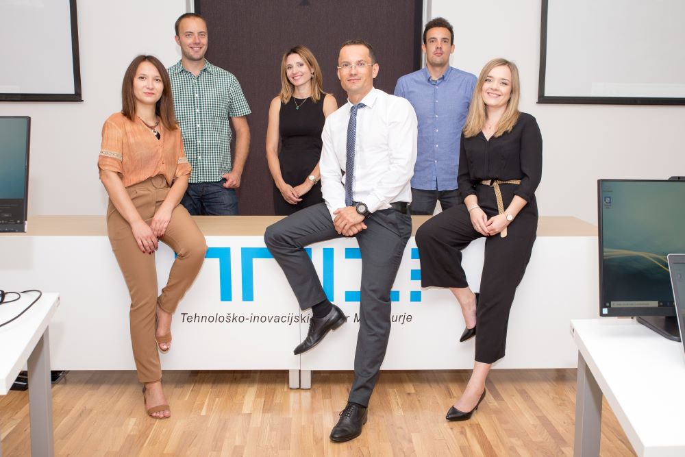 TICM tim s lijeva na desno: Sana Đukes, pomoćnica direktora, Igor Kovačić, voditelj odjela za projekte, Lea Trojnar Mustak, stručna suradnica u odjelu za projekte, Ivan Plačko, direktor, Tomislav Breznik stručni suradnik u odjelu inkubacije i edukacije, Simona Žikić Novak, stručna suradnica u odjelu inkubacije i edukacije