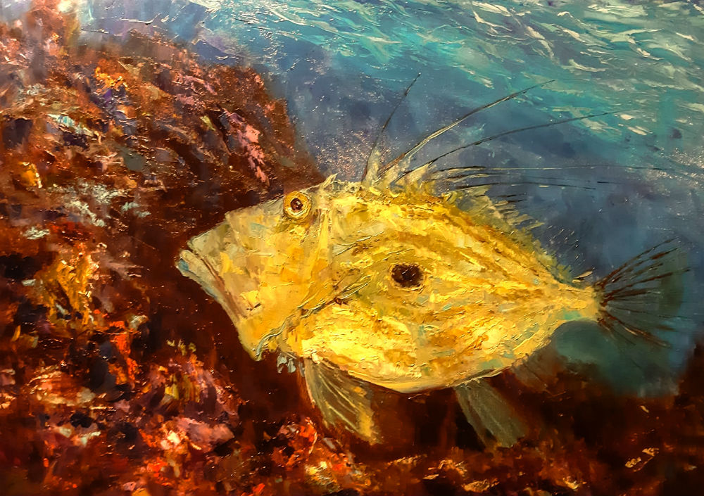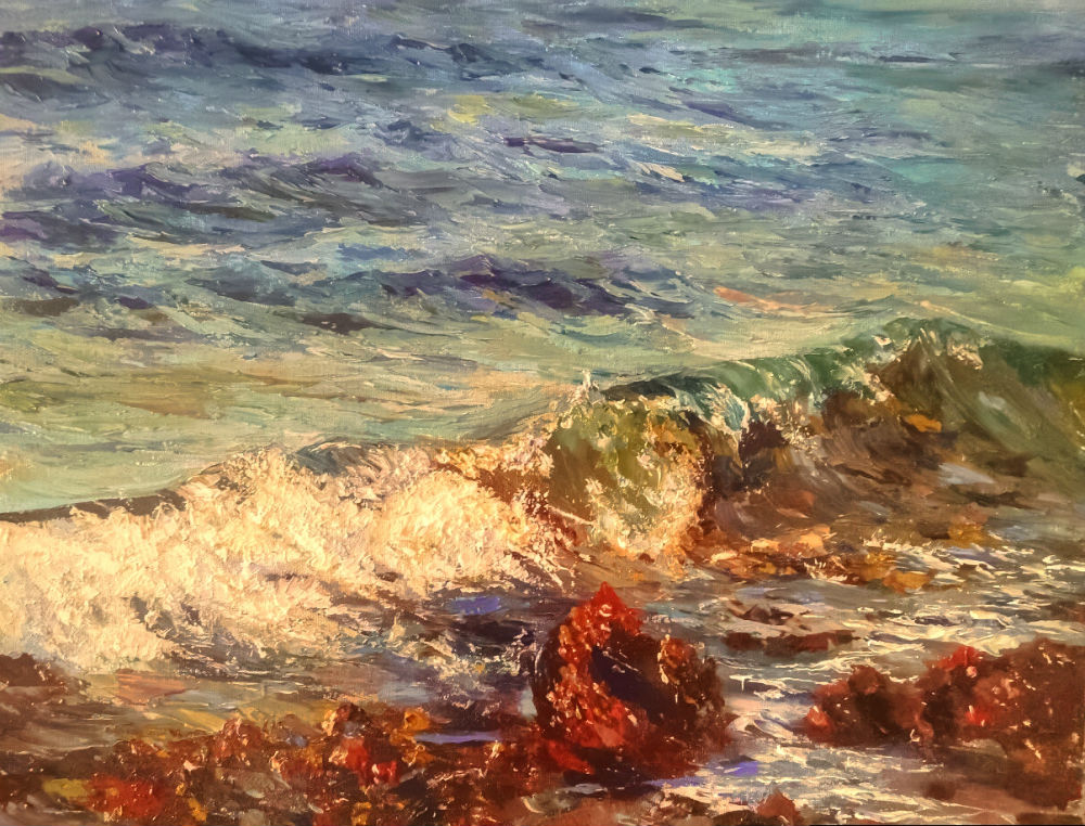 U najnovijem ciklusu slika, slikar se koncentrira, uz stanoviti, blagi odmak od uobičajenog plavila, prema zlatnoj i smeđoj boji, stavljajući u prvi plan tišinu, posvemašnji muk koji je prekrio vodu, natkrilio otok, sve se utišalo, i na površini i u dubini,ni galebovi se ne čuju i oni su se primirili i sve je u očekivanju, iščekivanju nagle i teško naslutive vremenske promjene.Zanimljivo je primijetiti kako jedna slika, s motivom jedva vidljivih valova, koji se prelijevaju iz jedne boje u drugu, zapravo, rafinirano autorsko rješenje koje iznimno naginje prema nefigurativnom, prema nelimitiranim slobodama apstrakcije.