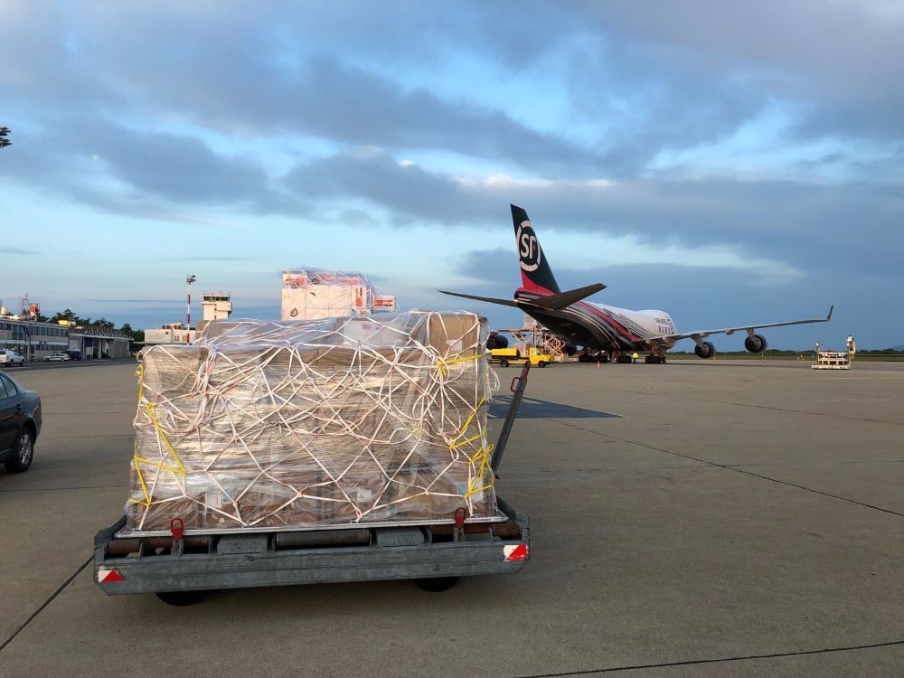 Na današnjem letu stigla je oko 80 tona količina dezinficijensa i maski koje je Hrvatska kupila od tvrtke Sinopharm te oko 6 tona donacija. Letom je dopremljena vrijedna donacija mehaničkih ventilatora, testova na koronavirus te maski i vizira Zaklade Alibaba i Zaklade Jack Ma. Radi se o donaciji koja je dio niza sličnih inicijativa dviju zaklada da se dijelovima svijeta pogođenima epidemijom osigura pomoć. Zaklade se također bave financiranjem istraživanja i razvoja cjepiva kako u Kini, tako i na Peter Doherty Institute for Infection and Immunity u Melbourneu i Columbia University u New Yorku.