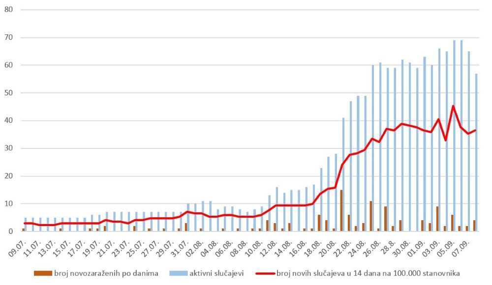 Na bolničkom liječenju u Općoj bolnici Varaždin trenutno se nalazi osam osoba, od čega je jedna osoba strani državljanin, dok se jedna dodatna osoba još uvijek liječi u Klinici za infektivne bolesti u Zagrebu. Od početka epidemije u Varaždinskoj županiji registrirano je 179 slučajeva zaraze i dodatnih 15 slučajeva koji nam se pripisuju zbog prijavljenog mjesta prebivališta.U posljednjih mjesec dana testirano je ukupno 3.777 uzoraka, a detektirano 111 osoba pozitivnih na COVID-19 što nam daje pojavnost virusa od 2,9% u testiranim uzorcima.
