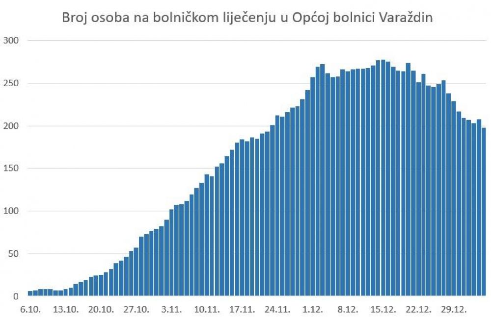ijekom 24 sata u Varaždinskoj županiji evidentiran je 21 novi slučaj zaraze koronavirusom, a broj novozaraženih unutar 7 dana na 100.000 stanovnika ovime je na 250.Varaždinska županija u posljednjih tjedan dana broji 417 novih slučajeva. Tijekom jučerašnjeg dana testirano je 292 uzoraka, a udio pozitivnih u testiranim uzorcima je 7 posto. Na bolničkom liječenju u Općoj bolnici Varaždin nalazi se 189 osoba s težom kliničkom slikom. Od toga je 84 na odjelu infektologije i drugim odjelima u Varaždinu, 18 ih je u jedinici intenzivnog liječenja od kojih 16 na respiratoru, 52 ih je u Klenovniku i 35 u Novom Marofu. Preminule su tri osobe pozitivne na COVID-19. Ukupno je do sada evidentirano 297 preminulih osoba pozitivnih na COVID-19.