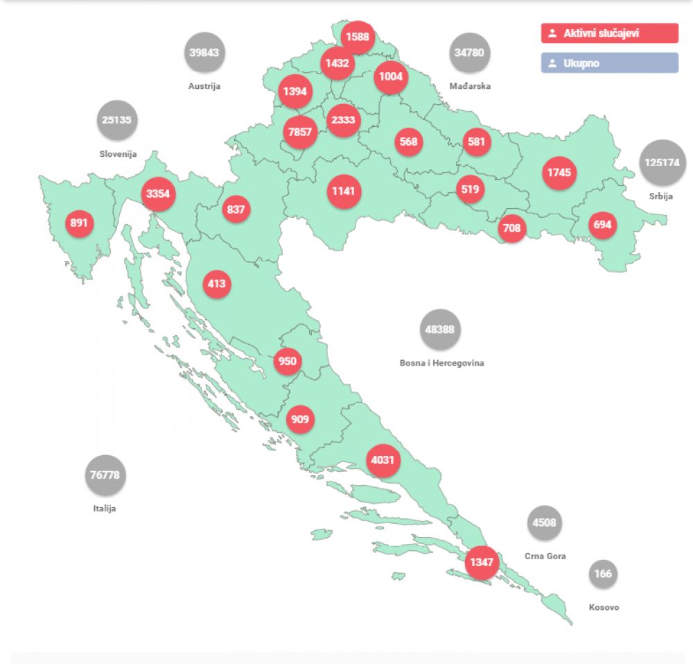Broj oboljelih od COVID-19 i stope po županijama možete pronaći na poveznici.