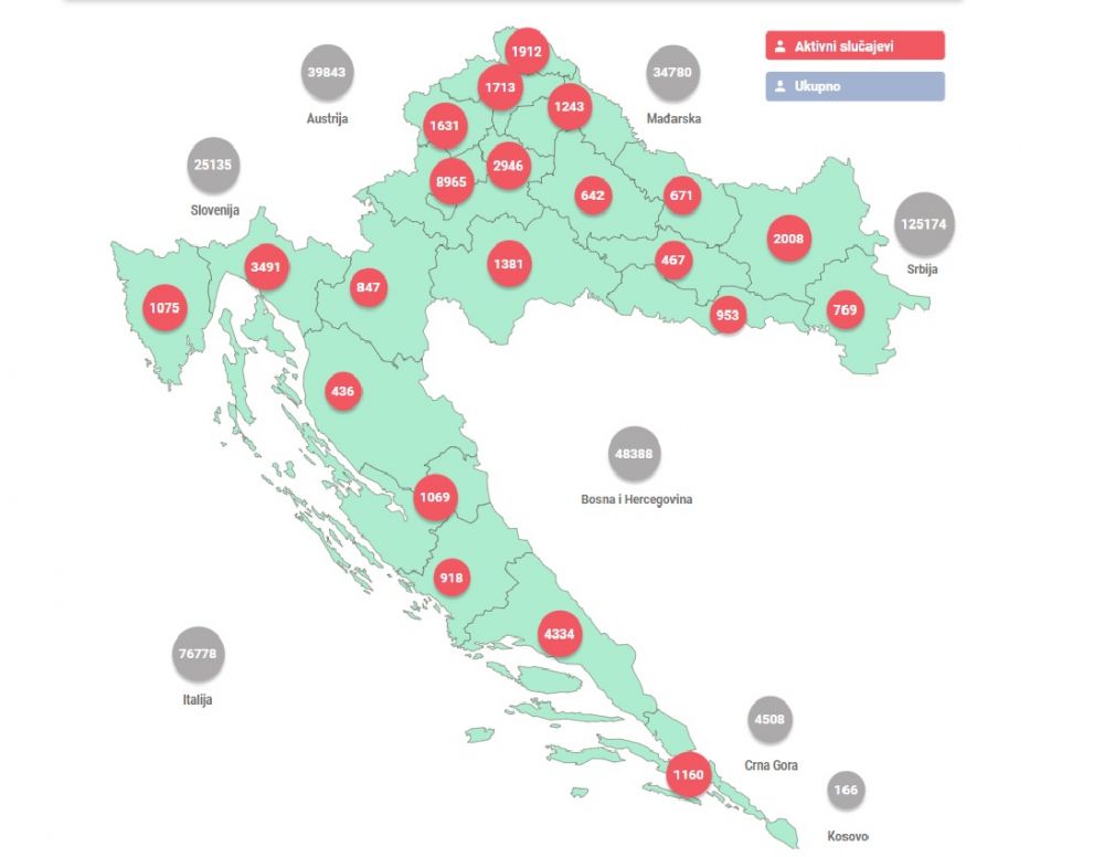 Broj oboljelih od COVID-19 i stope po županijama možete pronaći na poveznici.