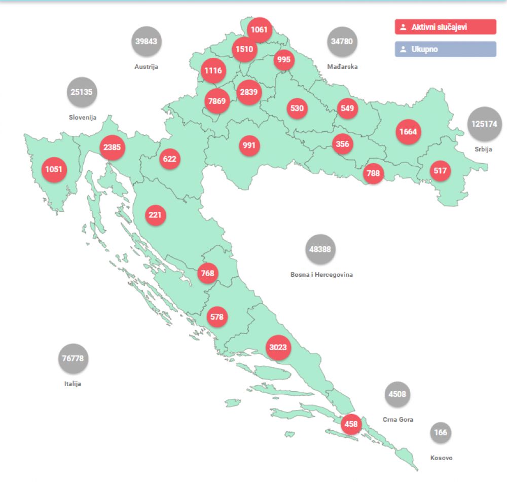 Broj oboljelih od COVID-19 i stope po županijama možete pronaći na poveznici.