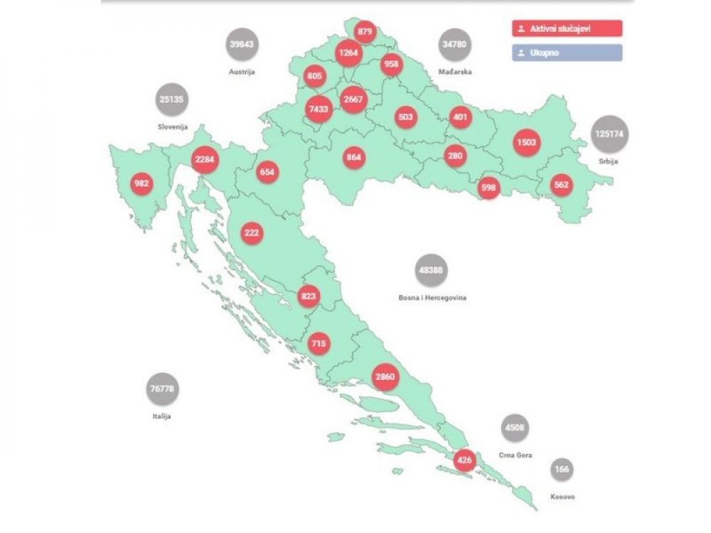 Broj oboljelih od COVID-19 i stope po županijama možete pronaći na poveznici.