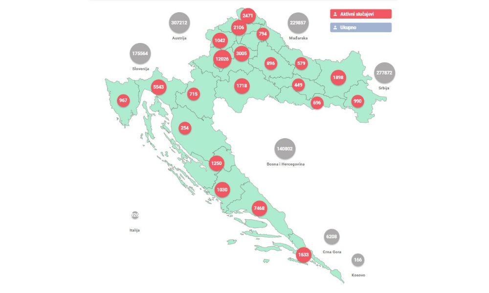 Broj oboljelih od COVID-19 i stope po županijama možete pronaći na poveznici.