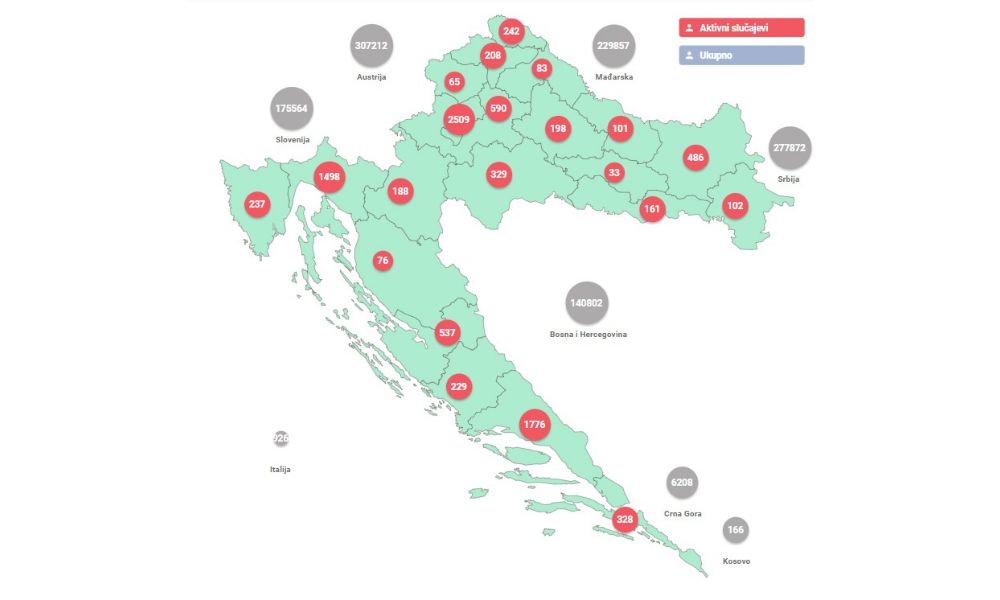 Broj oboljelih od COVID-19 i stope po županijama možete pronaći na poveznici.
