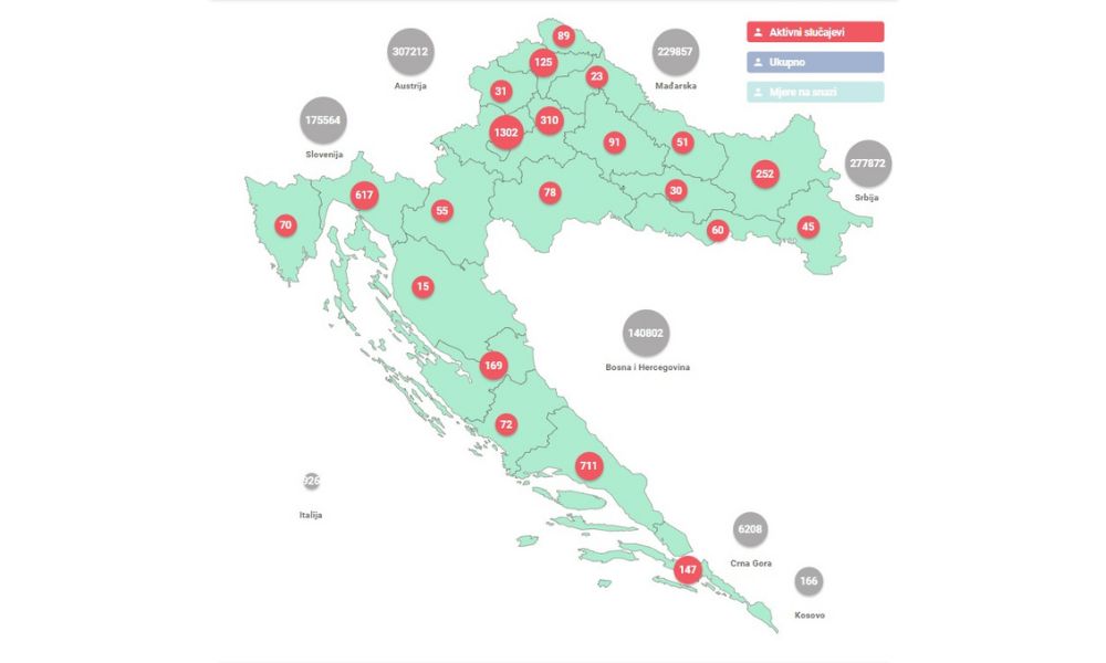 Broj oboljelih od COVID-19 i stope po županijama možete pronaći na poveznici.
