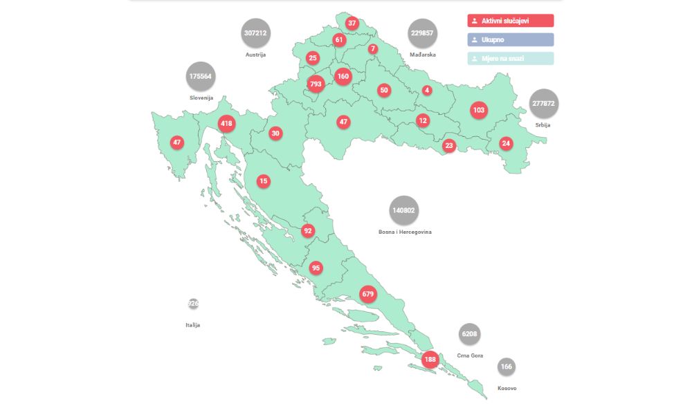 U posljednja 24 sata zabilježeno je 612 novih slučajeva zaraze virusom SARS-CoV-2 te je broj aktivnih slučajeva u Hrvatskoj danas ukupno 2.910.
