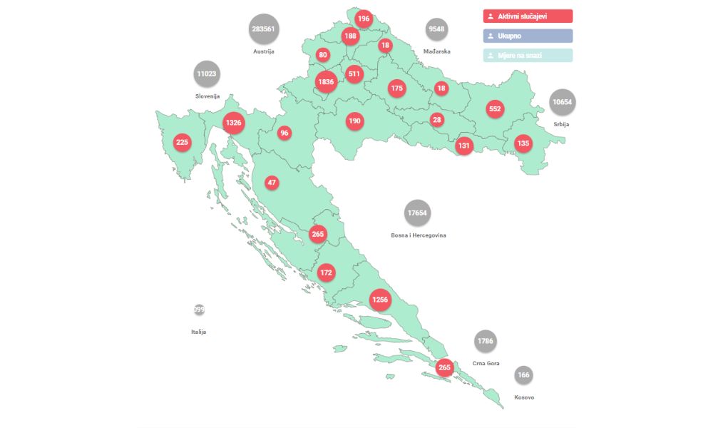 U posljednja 24 sata zabilježeno je 1.872 novih slučajeva zaraze virusom SARS-CoV-2 te je broj aktivnih slučajeva u Hrvatskoj danas ukupno 7.710.