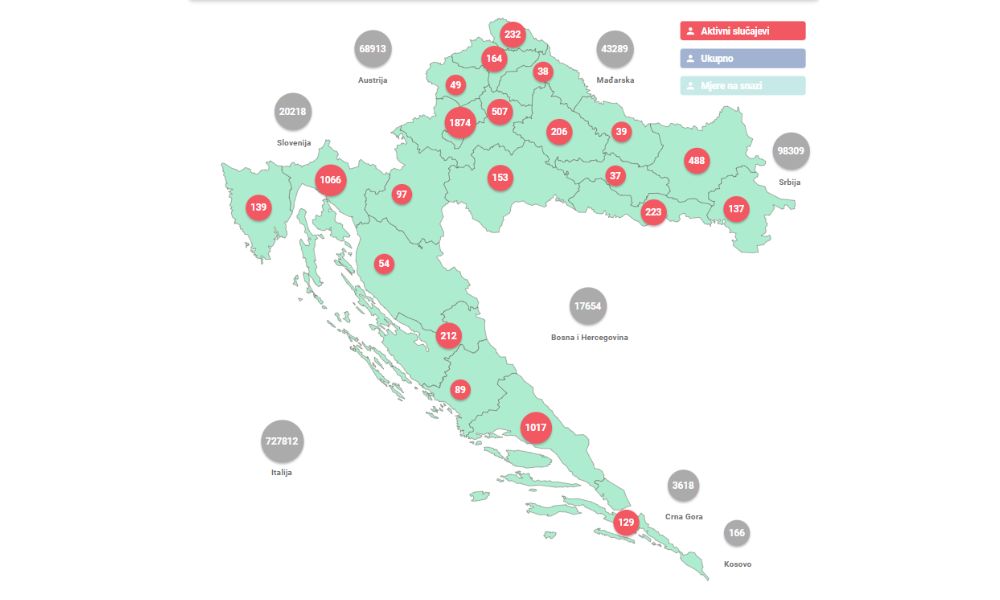 U posljednja 24 sata zabilježeno je 1.051 novih slučajeva zaraze virusom SARS-CoV-2 te je broj aktivnih slučajeva u Hrvatskoj danas ukupno 6.950.