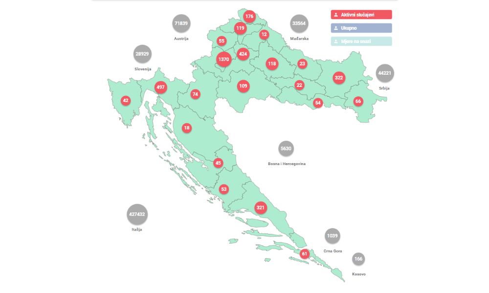 U posljednja 24 sata zabilježeno je 526 novih slučajeva zaraze virusom SARS-CoV-2 te je broj aktivnih slučajeva u Hrvatskoj danas ukupno 3.981.
