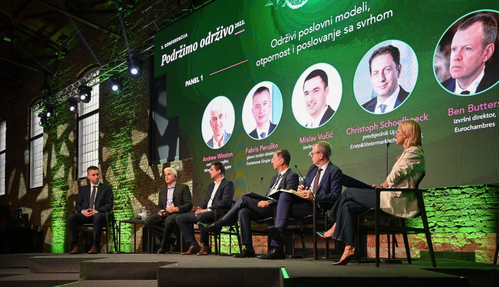 Za promjenu je ključan menadžment temeljen na istinskoj brizi za sredinu u kojoj posluje i gradnji povjerenja, a na panelu koji je uslijedio istaknuto je da je otpornost najveća vrijednost tvrtki kao i da je za uspjeh zelene tranzicije ključno da tvrtke u njoj prepoznaju svoju dugoročnu korist. Fabris Peruško, glavni izvršni direktor i član Upravnog odbora Fortenova Grupe, pojasnio je da je ova velika grupacija, koja troši čak 2% ukupne energije u RH, snažno zauzela kurs održivosti nakon što je uspostavila otpornu kapitalnu strukturu koja može odoljeti šokovima. Tržište je dosad tražilo što jeftiniji proizvod, bez da su u njegovu cijenu uračunati stvarni okolišni i društveni troškovi njegove proizvodnje, ali jesu li potrošači spremni platiti pravu cijenu? Istraživanja pokazuju da je mlađim generacijama stvarni trošak i poslovanje sa svrhom jedan od ključnih faktora pri odabiru proizvoda, što znači da se trend budućnosti već nazire.