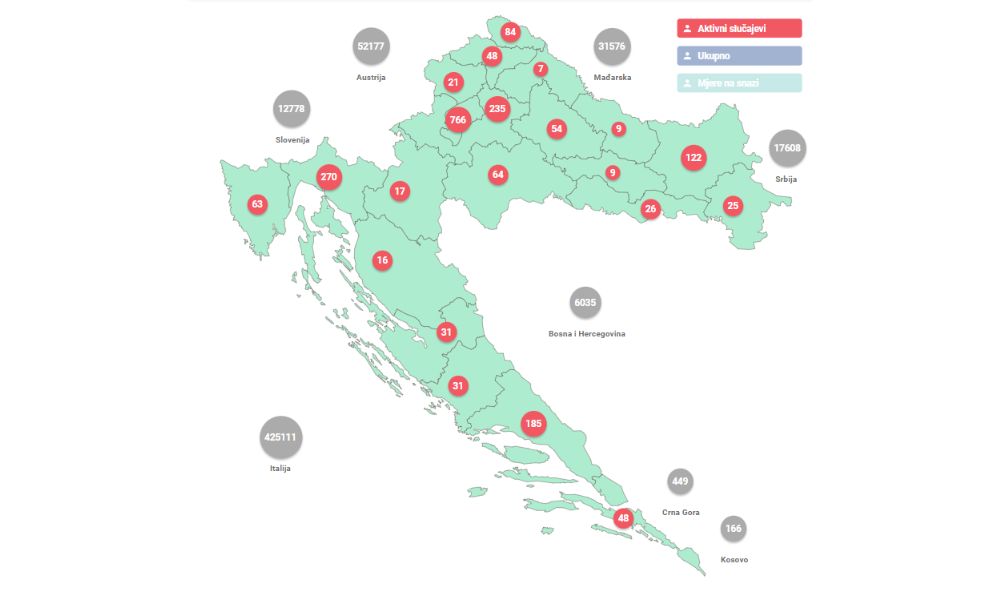 U posljednja 24 sata zabilježeno je 317 novih slučajeva zaraze virusom SARS-CoV-2 te je broj aktivnih slučajeva u Hrvatskoj danas ukupno 2.131.
