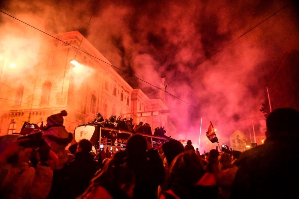 Uvjeren sam da će u budućnosti Hrvatska biti svjetski prvak, kazao je Luka Modrić pred više od 100 tisuća navijača na zagrebačkom Trgu bana Jelačića i okolnim ulicama, koji su dočekali hrvatsku nogometnu reprezentaciju, brončanu sa Svjetskog prvenstva u Katru.Nakon točno mjesec dana provedenih u Dohi, sedam odigranih utakmica, 20 odrađenih treninga, te osvojene bronce, hrvatski reprezentativci su se vratili u domovinu, gdje im je priređen još jedan veličanstveni doček, nalik onom iz 2018. godine, kada su Vatreni u Rusiji osvojili srebro. Na središnju pozornicu Trga redom su prozivani igrači i članove stručnog stožera, a najviše ovacija dobio je kapetan Luka Modrić, da bi potom klapa Hrvatske ratne mornarice Klapa Juraj izvela himnu.