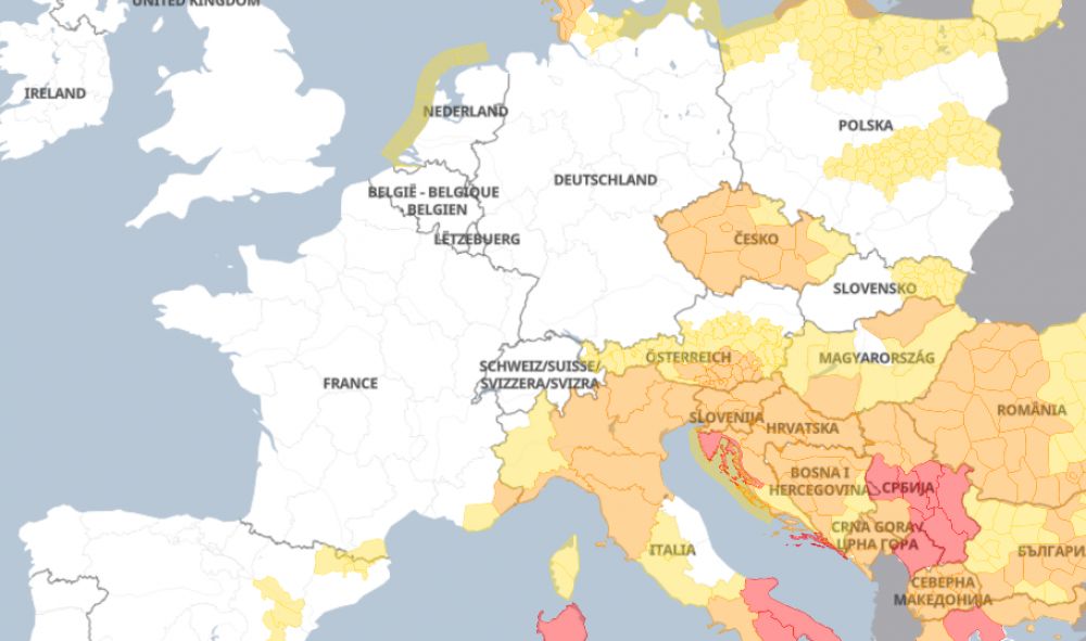 HMZ je objavio crveno upozorenje za riječku regiju, dok je za zagrebačku, osječku, gospićku i karlovačku narančasto upozorenja. Lokalni pljuskovi praćeni grmljavinom izgledni su već prijepodne, ali osobito u drugom dijelu dana i navečer kada je moguće i grmljavinsko nevrijeme uz jak i olujni vjetar, ponegdje praćen tučom, prognoza je DHMZ-a.