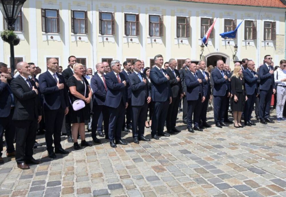 Svečanost obilježavanja započela je polaganjem vijenaca kod Spomenika Domovini, a u izaslanstvu Vlade Republike Hrvatske predvođenom predsjednikom Andrejem Plenkovićem, bio je i potpredsjednik Vlade Republike Hrvatske i ministar obrane Ivan Anušić.