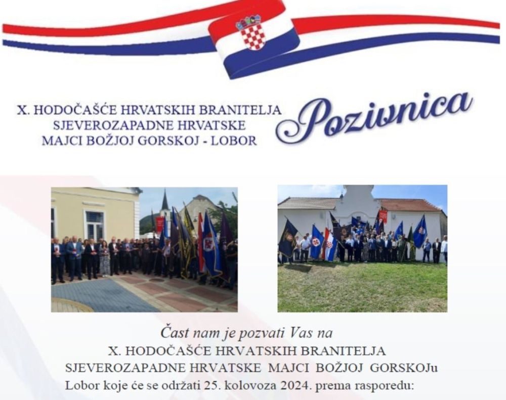 Tradicionalno, ove godine jubilarno 10. hodočašće hrvatskih branitelja sjeverozapadne Hrvatske Majci Božjoj Gorskoj u Loboru održat će se u nedjelju, 25. kolovoza, kako bi se branitelji još jednom okupili i zajedno pomolili te odali počast svima onima koji su dali život za domovinu.