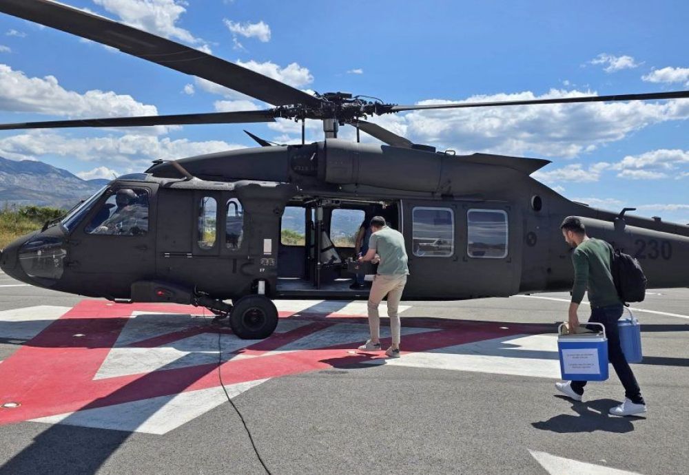 Helikopter HRZ-a Black Hawk poletio je iz vojarne Lučko s transplantacijskim timom u 8.30 sati, te sletio na helidrom Kliničkog bolničkog centra Split.
