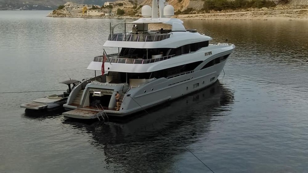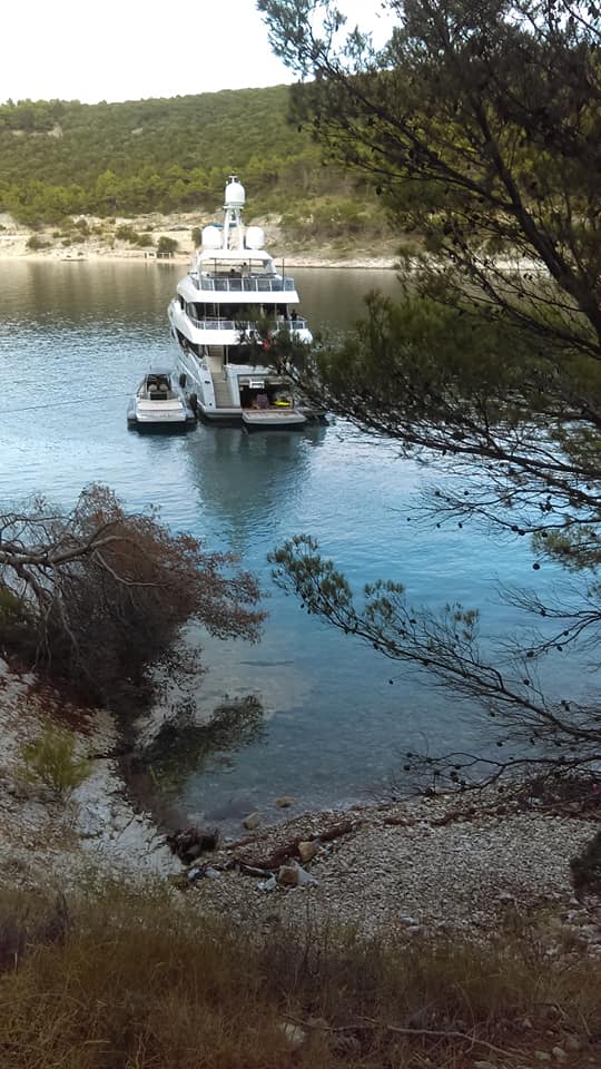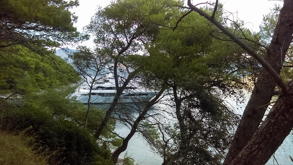 U večernjoj šetnji do "svjetionika", u drugim lučicama, lijepoj maloj uvali ugledam jahturinu. Pomislim, snimit ću je,možda je na njoj neko "zvučno" zvjezdano ime, ili neki poznati ruski, emiratski tajkun ,pa da se poslije mogu hvalit! ( ha,ha...)