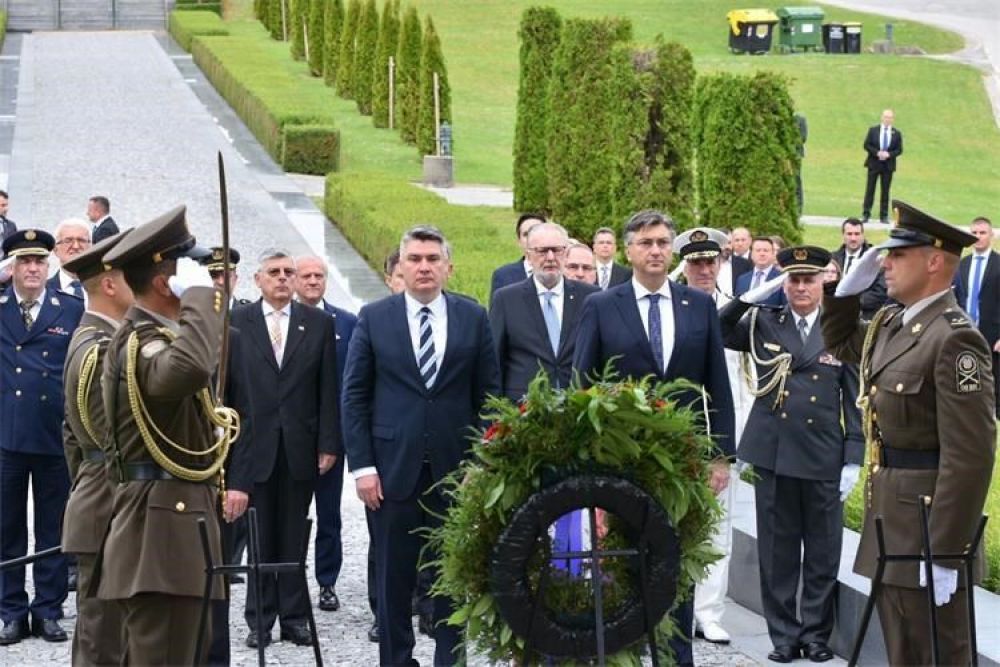 Na Trgu svetog Marka, simbolu hrvatske državnosti, nazočni su bili predsjednici Vlade i Hrvatskog sabora Andrej Plenković i Gordan Jandroković, ne i predsjednik države Zoran Milanović.
