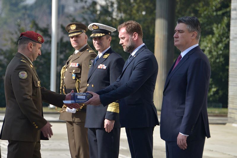 Uz zapovjednika Počasno-zaštitne bojne brigadira Elvisa Burčula, svečanosti je nazočio i vrhovni zapovjednik Oružanih snaga Republike Hrvatske i predsjednik RH Zoran Milanović.