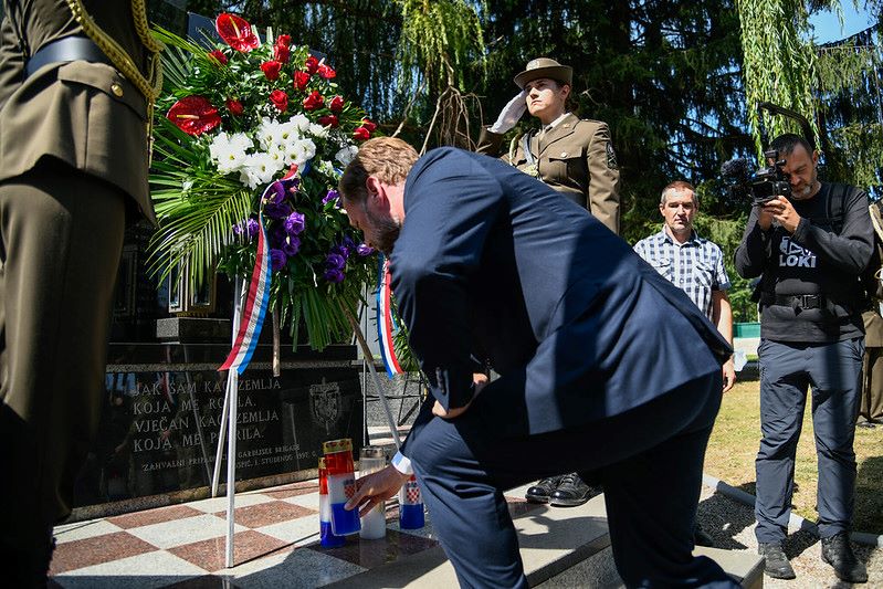 “Danas s ovoga mjesta sve skupa pozivam na zajedništvo. Da se više uvažavamo i puno više razgovaramo, da zajedno izgradimo bolju, pravedniju i prosperitetniju državu i društvo za naše mlade, da žrtva ne bi bila uzalud nego kao što sjaji naša pobjeda i Domovinski rat, tako da sjaji i kompletna država”, poručuje Hećimović.
