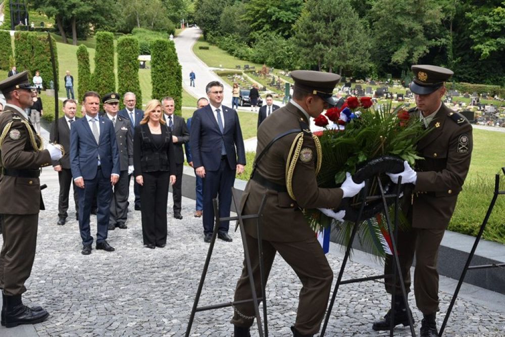 Položeni su zajednički vijenci na Oltar domovine, kod spomenika „Glas hrvatske žrtve – Zid boli“, kod Središnjeg križa u Aleji poginulih hrvatskih branitelja iz Domovinskog rata te na grob dr. Franje Tuđmana, prvog hrvatskog predsjednika.