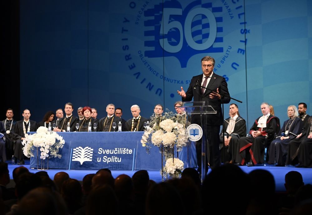 Premijer je poručio studentima da splitsko Sveučilište ima kvalitetne programe i fakultete koji doprinose razvoju svih segmenata društva. Naglasio je važnost angažmana intelektualaca i akademske zajednice, potičući ih na veći javni i politički angažman kako bi dinamizirali akademsku zajednicu i osigurali primjenu znanstvenih dostignuća u praksi. Premijer Plenković istaknuo je i četiri temeljne piste djelovanja u sljedećim godinama: obrazovanje, demografska revitalizacija, zelena tranzicija i digitalna transformacija. Ova područja, prema premijeru, kriju buduća radna mjesta i hrvatsku konkurentnost, te su ključna za napredak i inovativnost zemlje.