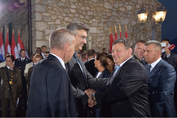 Na Kninskoj tvrđavi u subotu navečer, u nazočnosti državnog vrha, priređen je prijem za ratne zapovjednike iz Domovinskog rata, na kojemu je predsjednica Republike i vrhovna zapovjednica Oružanih snaga RH Kolinda Grabar Kitarović odlikovala umirovljene generale Antu Gotovinu i Mladena Markača Veleredom Kralja Petra Krešimira IV. s lentom i Danicom. Na sinočnjem domjenku, na kojem je predsjednica Republike i vrhovna zapovjednica Oružanih snaga RH Kolinda Grabar-Kitarović Veleredom kralja Petra Krešimira IV. s lentom i Danicom odlikovala umirovljene general-pukovnike Antu Gotovinu i Mladena Markača.piše HRT.Generali Gotovina i Markač odlikovani su za izniman doprinos neovisnosti i cjelovitosti Republike Hrvatske, izniman doprinos u stvaranju ratne strategije i vojne doktrine u obrambenom Domovinskom ratu, te za zasluge i uspjehe u izgradnji i zapovijedanju postrojbama Oružanih snaga RH, rekla je predsjednica na svečanosti u povodu Dana pobjede i domovinske zahvalnosti, Dana hrvatskih branitelja i 23. obljetnice Vojno-redarstvene operacije "Oluja".Ovo odlikovanje, istaknula je, priznanje je i za poseban doprinos i žrtvu koju su generali dali braneći i boreći se za istinu o Domovinskom ratu pred Međunarodnim kaznenim sudom u Haagu."Oluja" je, istaknula je, bila, ne samo vojnički uspješna nego i časno izvojevana pobjeda i neoboriv dokaz o pravednom karakteru "Oluje" i cijelog Domovinskog rata, ali i o karakteru hrvatskog naroda koji nije želio rat ni žrtve, nego mir i suradnju među državama i narodima.