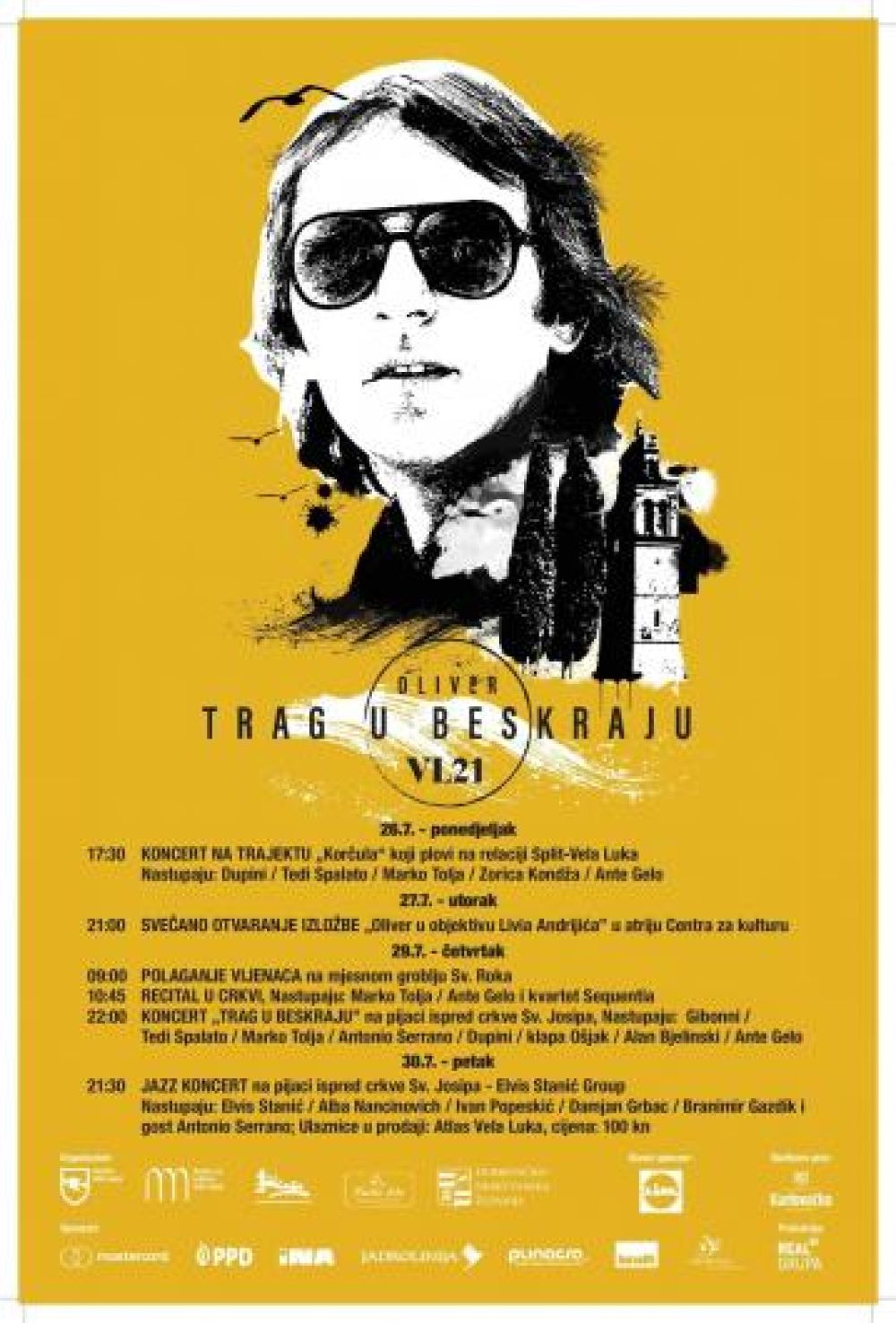 Koncert Trag u beskraju održat će se u četvrtak 29. srpnja s početkom u 22 sata na pijaci ispred crkve sv. Josipa u Veloj Luci. Na koncertu će nastupit Gibonni, Tedi Spalato, Marko Tolja, Antonio Serrano, Dupini, klapa Ošjak. Glazbeni producent Ante Gelo s orkestrom kojim ravna maestro Alan Bjelinski vodit će kroz ovu glazbenu priču sve ljubitelje lika i djela neponovljivog Olivera.