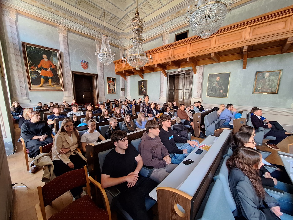 U Skupštinskoj dvorani Varaždinske županije učenici – ambasadori Europskog parlamenta iz Prve gimnazije Varaždin predstavili su program „Škola ambasador Europskog parlamenta“ (EPAS). Predstavljene su provedene aktivnosti u sklopu projekta „Europljani protiv lažnih vijesti“, s posebnim naglaskom na važnost medijske pismenosti i prepoznavanja dezinformacija. Ujedno su učenici održali edukaciju za srednjoškolce pod nazivom „Škrolaj pametno: kako prepoznati dezinformacije“, kojoj je cilj osnažiti mlade da razvijaju kritičko mišljenje i postanu otporniji na lažne vijesti u online prostoru.