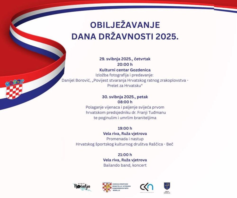 Program obilježavanja Dana državnosti 2025. u Gradu Novalji u četvrtak, 29. svibnja s početkom u 20 sati, uz prigodnu izložbu fotografije donosi i predavanje: "Povijest stvaranja Hrvatskog Ratnog Zrakoplovstva - Prelet za Hrvatsku."