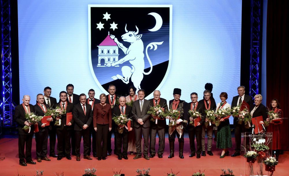 Predsjednica Republike Kolinda Grabar-Kitarović na svečanoj sjednici Gradskog vijeća u prigodi obilježavanja Dana Grada Velike Gorice, čestitajući svim građanima Dan Grada i blagdan njihove zaštitnice Sv. Lucije, posebnu čestitku uputila je ovogodišnjim dobitnicima nagrada i priznanja, te pozirala na zajedničkoj fotografiji.
