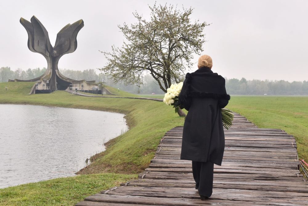 Predsjednica Republike Hrvatske Kolinda Grabar-Kitarović posjetila je Spomen-područje Jasenovac kako bi odala počast žrtvama.„Drugi svjetski rat u našoj domovini i danas budi bolna sjećanja na brojna stradanja. Polažući vijenac u sjećanje na žrtve logora Jasenovac i stojeći u tišini uz ovaj kameni cvijet, izražavam najdublji pijetet svim žrtvama koje su stradale u logoru.Neka ovo uvijek bude samo mjesto pijeteta, ali i mjesto koje će nas opominjati koliko je važno mlade naraštaje odgajati za mir, zajedništvo i solidarnost među ljudima i narodima. Prošlost ne možemo promijeniti, ali budućnost možemo graditi na bolji način, za ljepši i humaniji život svih ljudi u Hrvatskoj i diljem svijeta“, upisala je Predsjednica Republike u knjigu dojmova.