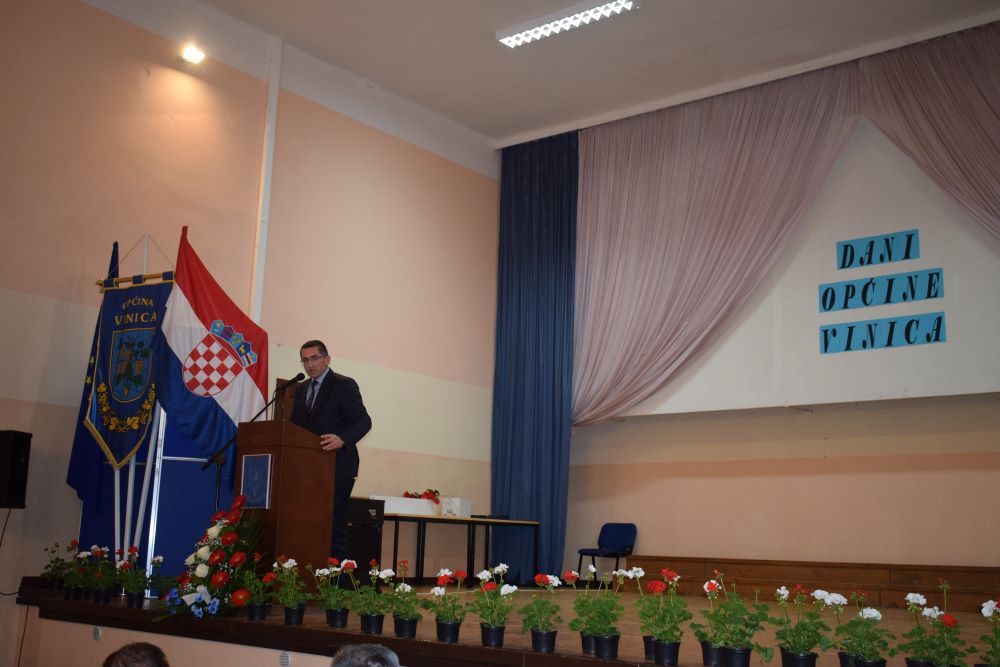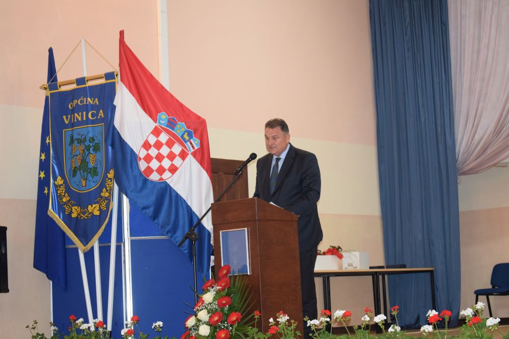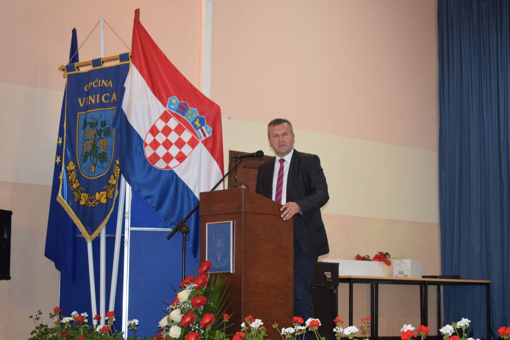 Treba tu svakako zahvaliti i svim direktorima počev od Zvonka Rožmariću, Danijela Bunića, Željka Bunića, Davora Skroze, Stjepana Markovića, ravnatelja ŽUC-a Tomislava Osonjačkog, ali i ostalima ostalim poslovnim partnerima i onima koji nam pomažu. Poštovani gosti i uzvanici, pred nama je razdoblje novih investicija i optimizma, jučer smo tako između 181 općine, dobili od traženih 900 tis kuna 78 tisuća, da, dobro ste čuli i na rang listi smo peti od zadnje strane, ali ipak veliko hvala našem sumještaninu i uvaženom potpredsjedniku vlade. Ja sam unatoč velikom dodijeljenom novcu i dalje optimist, ponosan hadezeovac, koji časno odrađujem svoj peti načelnički mandat, sretan što sam okružen dobrim i vrijednim suradnicima i ljudima. Na kraju želim čestitati svim žiteljima dan općine, župljanima dan župe, osnovnoj i srednjoj školi dan škole, svima koji će dobiti ovogodišnja općinska priznanja posebno našim vatrogascima DVD-a Vinice, svima koji su pripremali i koji će sudjelovati na ovoj svečanoj sjenici, djeci, njihovim učiteljima i profesorima, članovima KUD-a, članicama ŽVS Leluje i tamburašima, a moje čestitke trojici naših najboljih studenata. Hvala još jednom svima na dolasku, Idemo dalje u nove pobjede, za Vinicu, za Hrvatsku. Hvala i Bog Vas poživi, poručio je načelnik Kostanjevec.