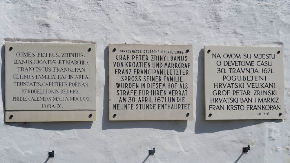 „Hrvatski narod danas živi san koji su u svoje vrijeme sanjali Petar Zrinski i Fran Krsto Frankopan i koji su za to dali ono najvrednije, svoje živote. Žrtva i križ, dobrota i božja ljubav bili su im primjer i snaga u teškim danima zatočeništva te uoči smrti što je u svom oproštajnom pismu posvjedočio Petar Zrinski svojoj ženi Katarini. Njihova vjera i požrtvovnost uzor su mnogima koji su slijedili njihovu žrtvu u težnji za slobodnom Hrvatskom, pogotovo našim braniteljima u Domovinskom ratu kada je proliveno mnogo krvi za ono što danas možemo uživati“, u komemorativnom govoru, kod Spomen ploče naglasio je zamjenik župana Međimurske županije Josip Grivec, dodavši kako je u njihovu čast 30. travanj proglašen Danom Međimurske županije, a Hrvatski sabor 2011. godine proglasio je 30. travnja, “Spomendanom Zrinskog i Frankopana.”