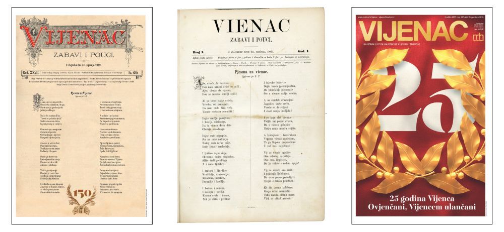 Književni list za umjetnost, kulturu i znanost Vijenac ove godine obilježava 150. godišnjicu. Na tradiciji Matičina Vienca pokrenuta 1869. Matica hrvatska Vijenac je obnovila na Božić 1993. kao dvotjednik za kulturu koji prati sva umjetnička i kulturna područja, kao i relevantne društvene i
