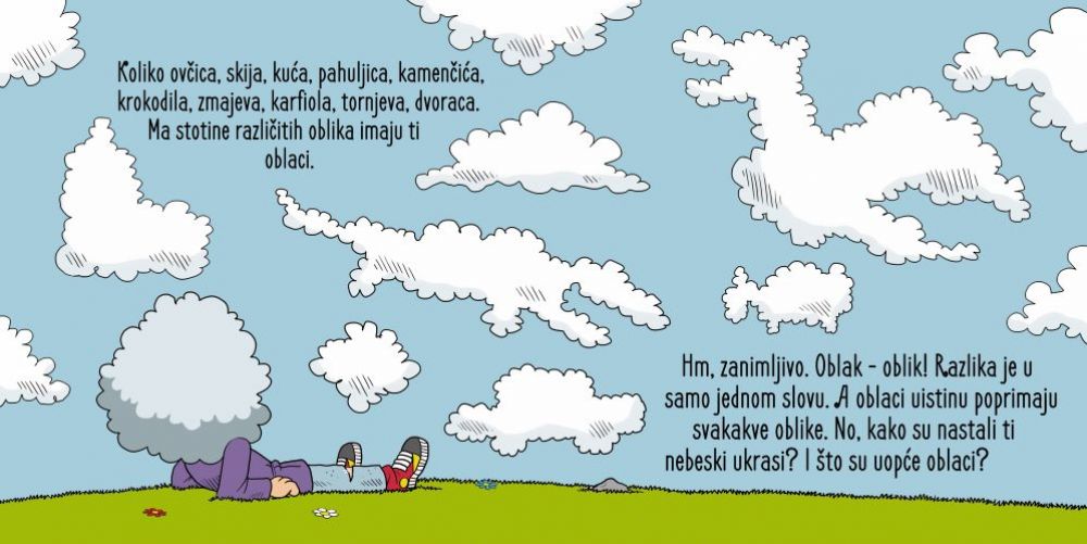 No, neprijeporno je da u „Oblačastoj“, osim Vedranine priče o oblacima, postoji još i bojanka, preme-taljke, rebusi i križaljka – ili bolje reći – ispunjaljka. Naravno, puna oblaka.