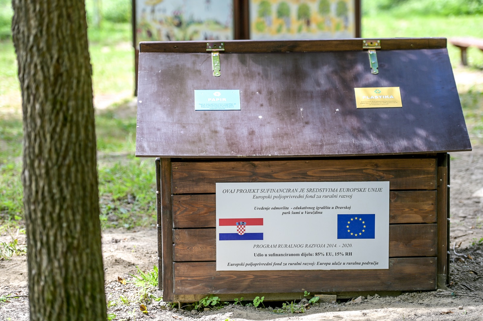 Projekt uređenja edukativnog dječjeg igrališta u Dravskoj park-šumi u Varaždinu financiran je iz Programa ruralnog razvoja u sklopu provedbe podmjere 8.5. “Potpora za ulaganja u poboljšanje otpornosti i okolišne vrijednosti šumskih ekosustava” tip operacije 8.5.2. “Uspostava i uređenje poučnih staza, vidikovaca i ostale manje infrastrukture“ u ukupnom iznosu od 516.000,00 kn, u sklopu natječaja iz 2018. godine na koji je projekt i prijavljen od strane Javne ustanove PRIRODA Varaždinske županije. Područje Dravske park-šume u Varaždinu od davnina je omiljeno, poznato i vrlo posjećeno šetalište stanovnika grada Varaždina, te prirodno izletište koje posjećuju i posjetitelji s okolnih područja. Obnovom i rekonstrukcijom postojećih te uređenjem i postavljanjem novih edukativnih i igraćih elemenata osigurani su uvjeti za kvalitetniji i dugotrajniji boravak posjetitelja u šumi, čime se utječe i na očuvanje zdravlja ljudi te ostvarivanje kvalitetnijih uvjeta života. Prisutnost informativno-edukativnih sadržaja istovremeno će utjecati na podizanje javne svijesti i učinkovitiju provedbu zaštite šuma, prirode i okoliša.